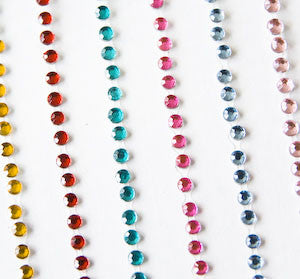 Self-adhesive, great for embellishing stamped images, acid free. 17 of each color, papaya, cherry, ocean, bubblegum, sky, blush